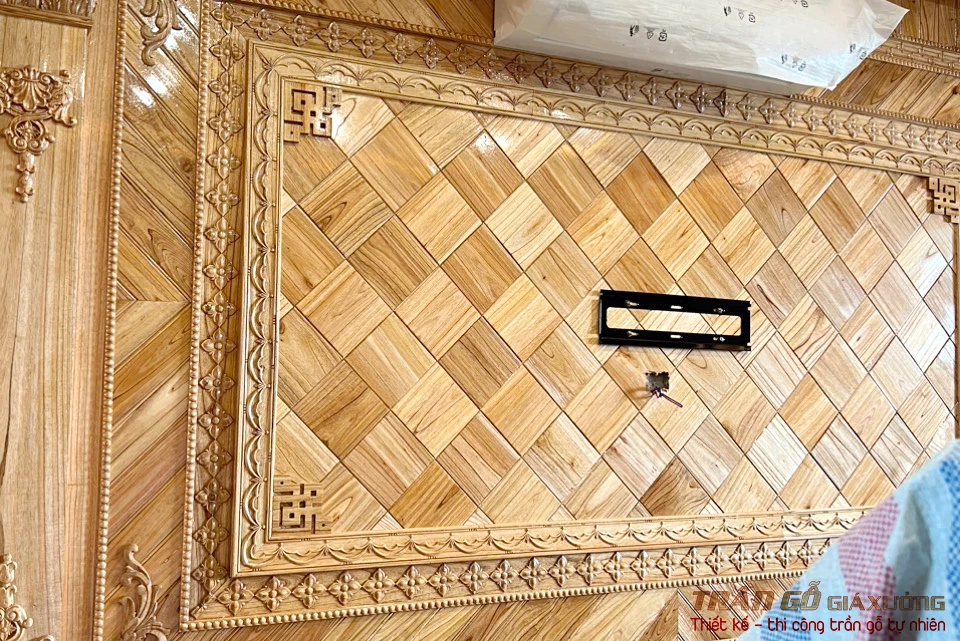 Trần gỗ xoan ta khắc họa tiết tinh xảo bằng máy CNC